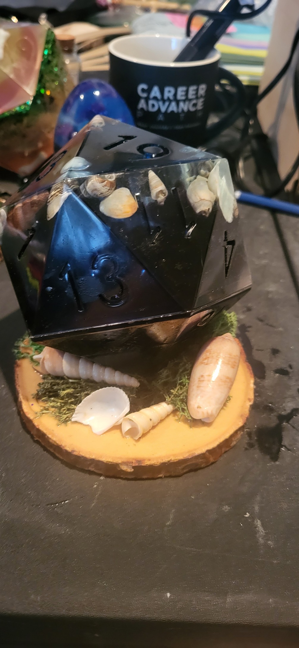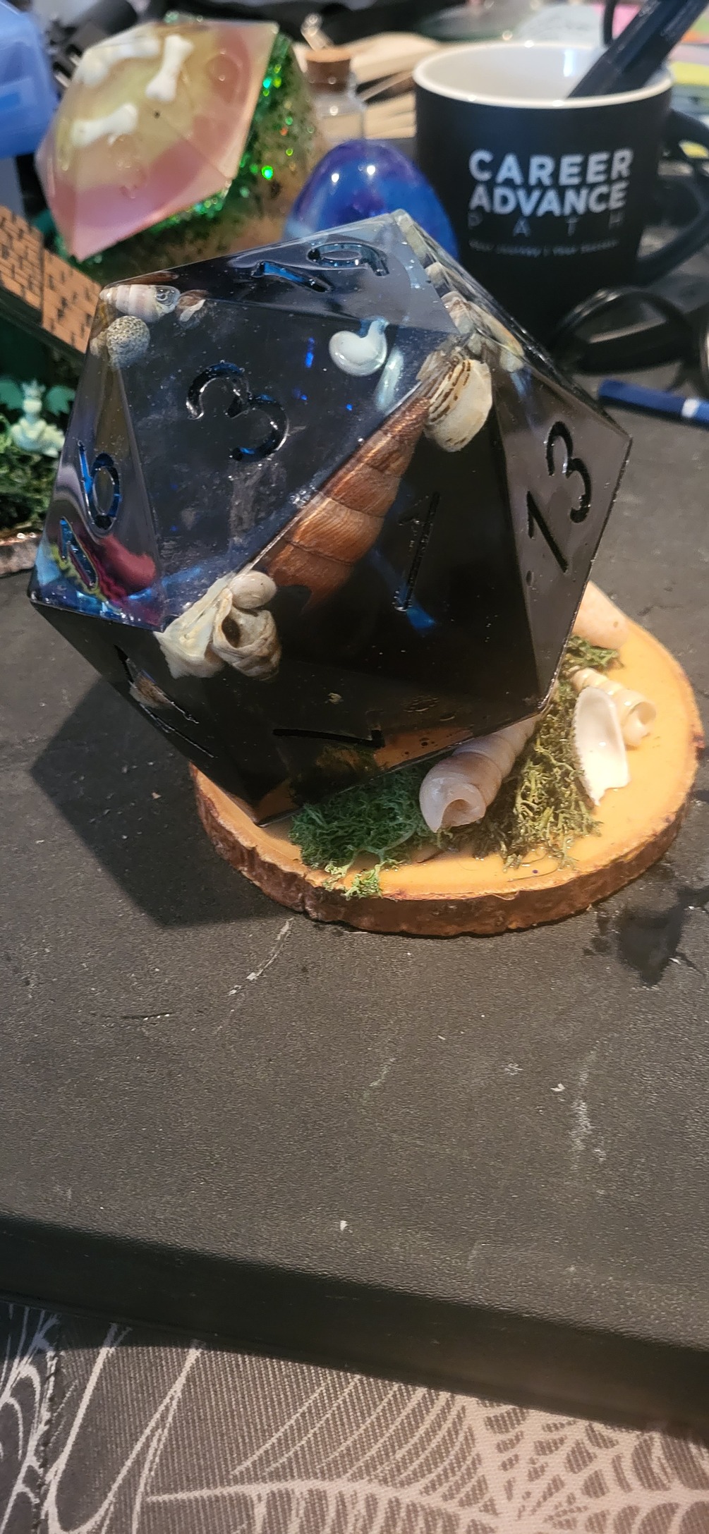 This Ocean Dice is for display only, this display is a beautiful Ocean Blue. There are real sea Shells inside the Resin. That Allows this gorgeous piece to have some Character.